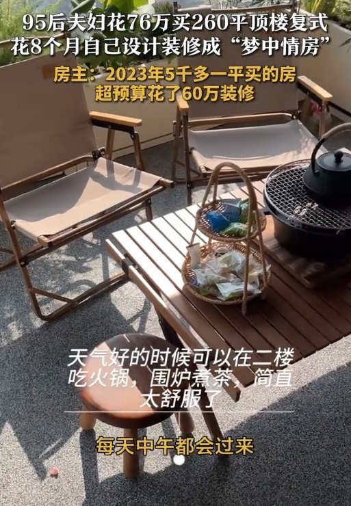近日,湖南吉首一对95后夫妻因花费76万元购买一套260平方米的顶楼复式而引发关注。房主唐先生在接受@新闻采访时表示,这套房子位于7楼顶楼复式,是在2023年以每平方米5000多元的价格购得,总价不到76万元。夫妻俩在国企和小学音乐教师的工作岗位上,经过8个月的努力,将这套房子设计装修成了他们心中的“梦中情房”。然而,由于对设计公司的方案不满意,夫妻俩决定自己进行装修,最终装修费用达到了60万元,超出了他们的预算。这一事件在网络上引发了热议,不少网友对他们的装修投入表示惊讶,同时也对他们追求梦想生活的勇气表示赞赏。这对95后夫妻的故事,不仅展示了年轻人对美好生活的追求,也反映了当代年轻人在购房和装修方面的消费观念。尽管花费巨大,但他们通过自己的努力,实现了心中的理想生活,这种精神值得我们学习和借鉴。海峡网综合荔枝新闻、潇湘晨报来源:海峡网综合